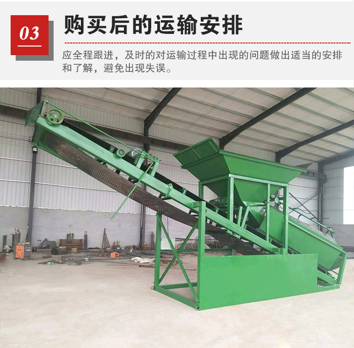 篩沙機在采購完畢后,廠家會在設備完成后進行運輸發貨,此時,用戶應全程跟進,及時的對運輸過程中出現的問題做出適當的安排和了解,避免廠家出現失誤,出現小配件漏發等問題。