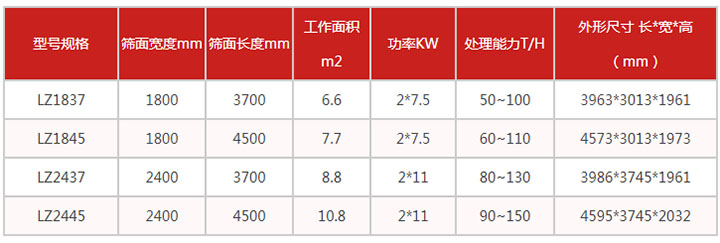尾礦干排篩技術參數