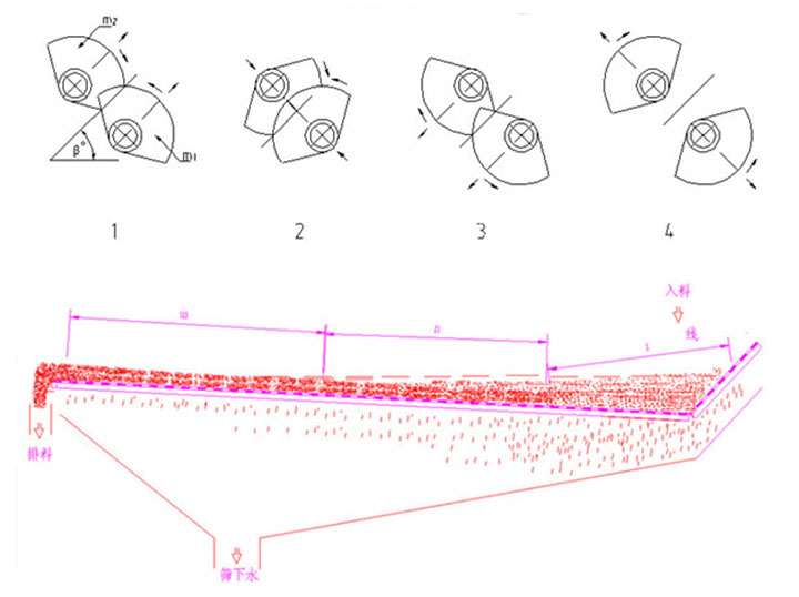 1,為了適應不同尾礦性質差別,本篩振幅可調,方法是調整主副偏心塊夾角,從而滿足不同性質尾礦的脫水效果。